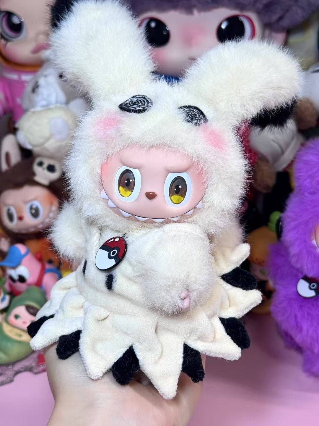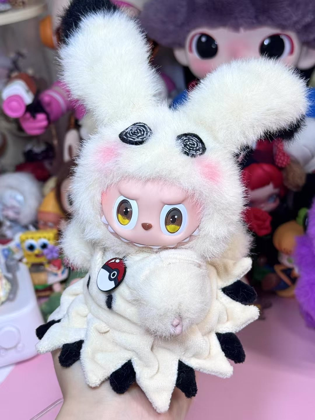 Andrea I was skeptical of the shop at first, but after receiving my first one I am in love! Fantastic quality, the artist really did a nice job. However, the little eyes on the front of the dress were missing, and the pink blush in the fur on the top of the head. But it's okay, I suppose I could put those on myself if I really wanted to. I also wish it had a little mimikyu tail attached to the dress or something, but maybe that would make it too close to the actual pokemon. Anyway, I still love it, even with the mistakes. Thanks!